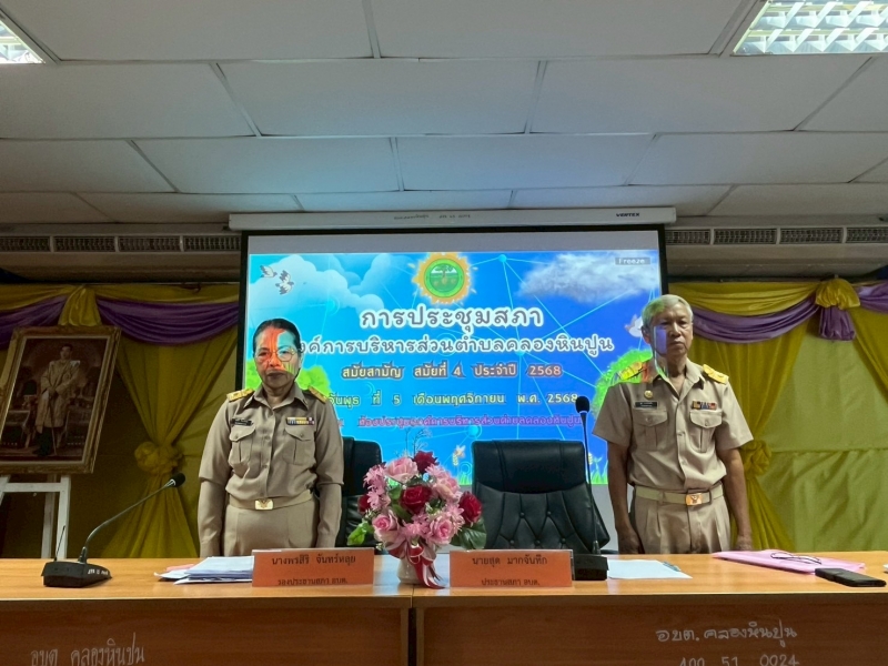 นายสุด มากจันทึก ประธานสภาองค์การบริหารส่วนตำบลคลองหินปูน เรียกประชุมสภาองค์การบริหารส่วนตำบลคลองหินปูน สมัยสามัญ สมัยที่ 4 ประจำปี 2568 พร้อมด้วยคณะผู้บริหารองค์การบริหารส่วนตำบลคลองหินปูน พนักงานส่วนตำบล ณ ห้องประชุมองค์การบริหารส่วนตำบลคลองหินปูน