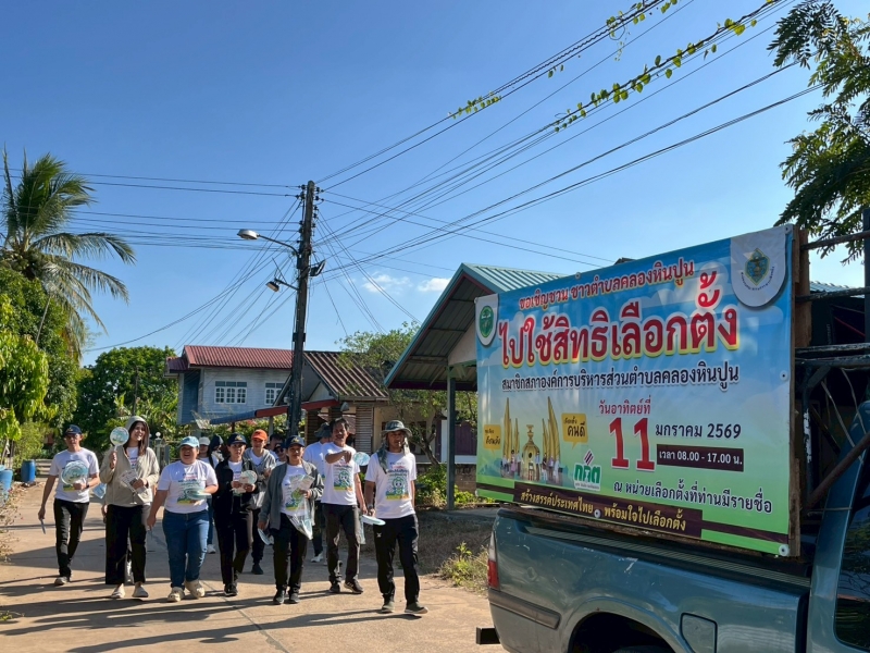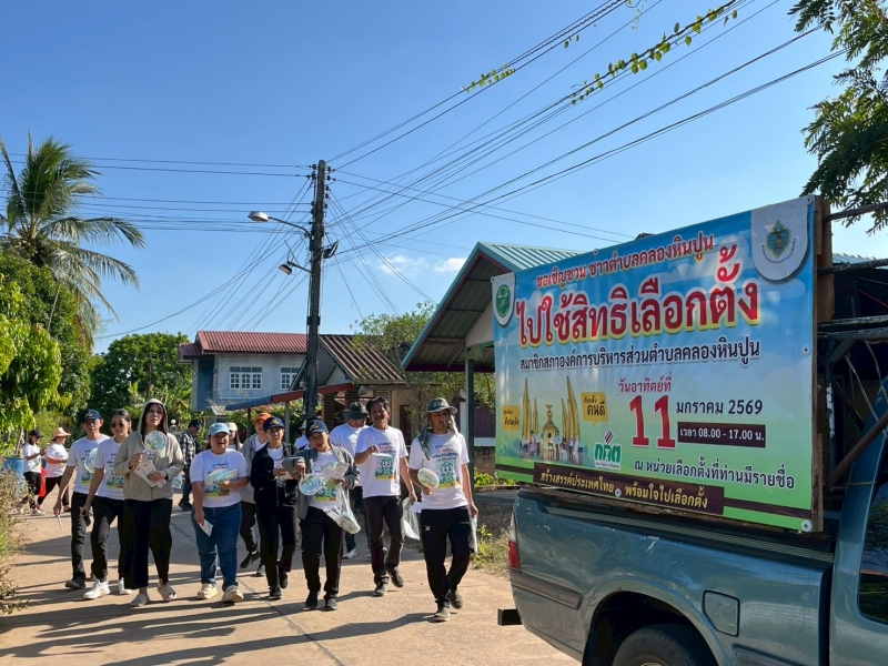 นางสาวสายฝน ใจญา ปลัดองค์การบริหารส่วนตำบลคลองหินปูน ได้นำทีมพนักงานองค์การบริหารส่วนตำบลคลองหินปูน เดินรณรงค์ให้พี่น้องประชาชนตำบลคลองหินปูน ไปใช้สิทธิ์เลือกตั้งสมาชิกสภาองค์การบริหารส่วนตำบล ใน วันอาทิตย์ ที่ 11 มกราคม 2569 ตั้งแต่ เวลา 8.00 น. - 17.00 น.