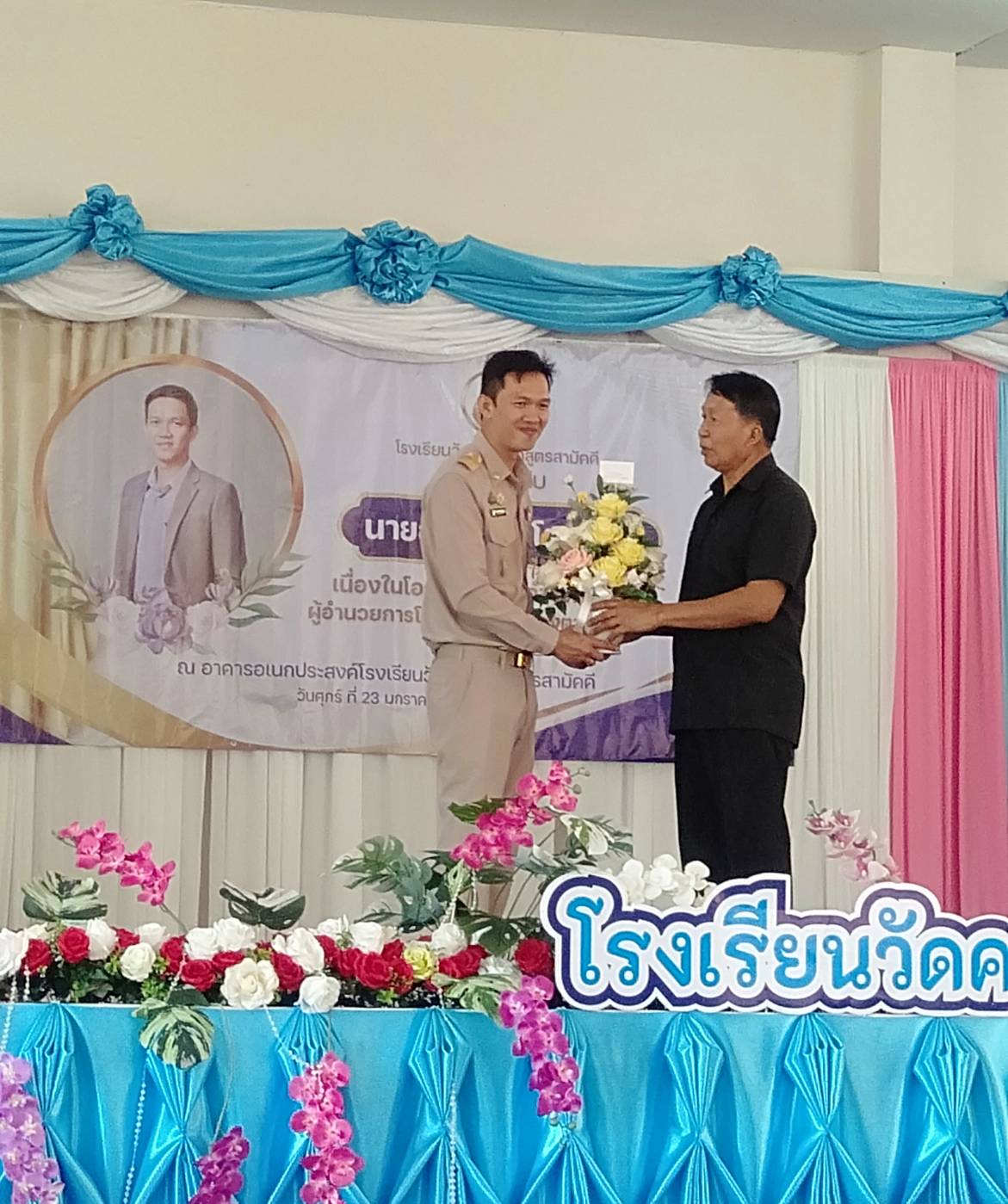วันศุกร์ที่ 23 มกราคม 2569 เวลา 09.30 น. นายชำนาญ หวังบุญ นายกองค์การบริหารส่วนตำบลคลองหินปูน มอบหมายให้นายสุริโย โกษาจันทร์ รองนายกองค์การบริหารส่วนตำบล และนางสาวรสสุคนธ์ แสนพันดร ครู รักษาราชการแทนผู้อำนวยการกองการศึกษาศาสนาและวัฒนธรรม ร่วมเป็นเกียรติและแสดงความยินดีต้อนรับผู้อำนวยการโรงเรียน นายอนุพงศ์ โตเจริญ ได้ย้ายมาดำรงตำแหน่ง ผู้อำนวยการโรงเรียนวัดคลองตาสูตรสามัคคี
