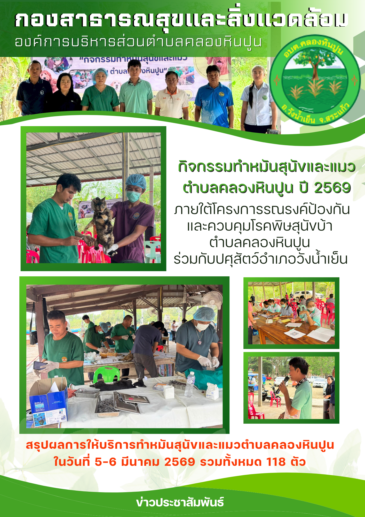 *****สรุปผลการให้บริการทำหมันสุนัขและแมวตำบลคลองหินปูน